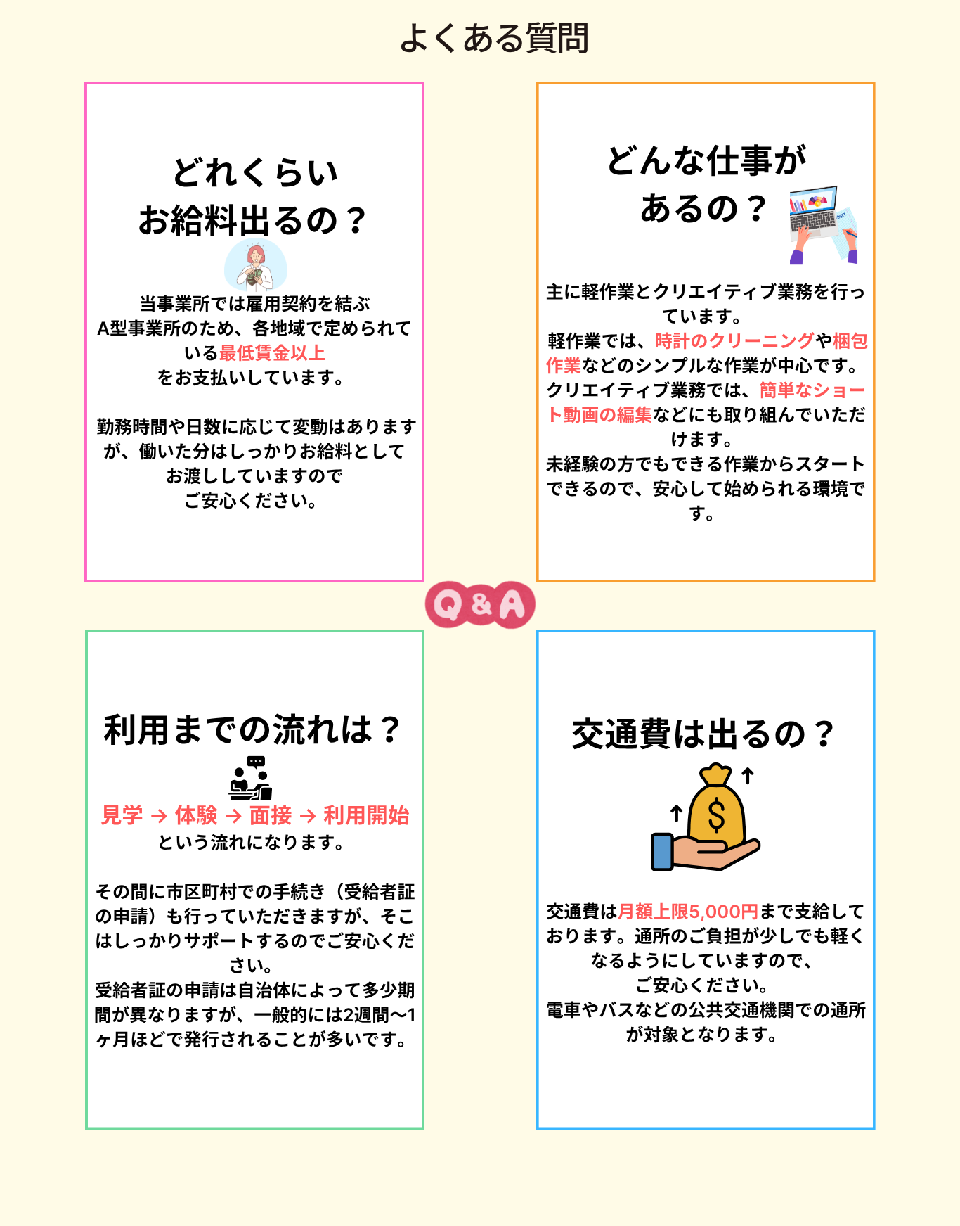 最低賃金以上の給与を受け取りながら働く障害福祉サービスです。