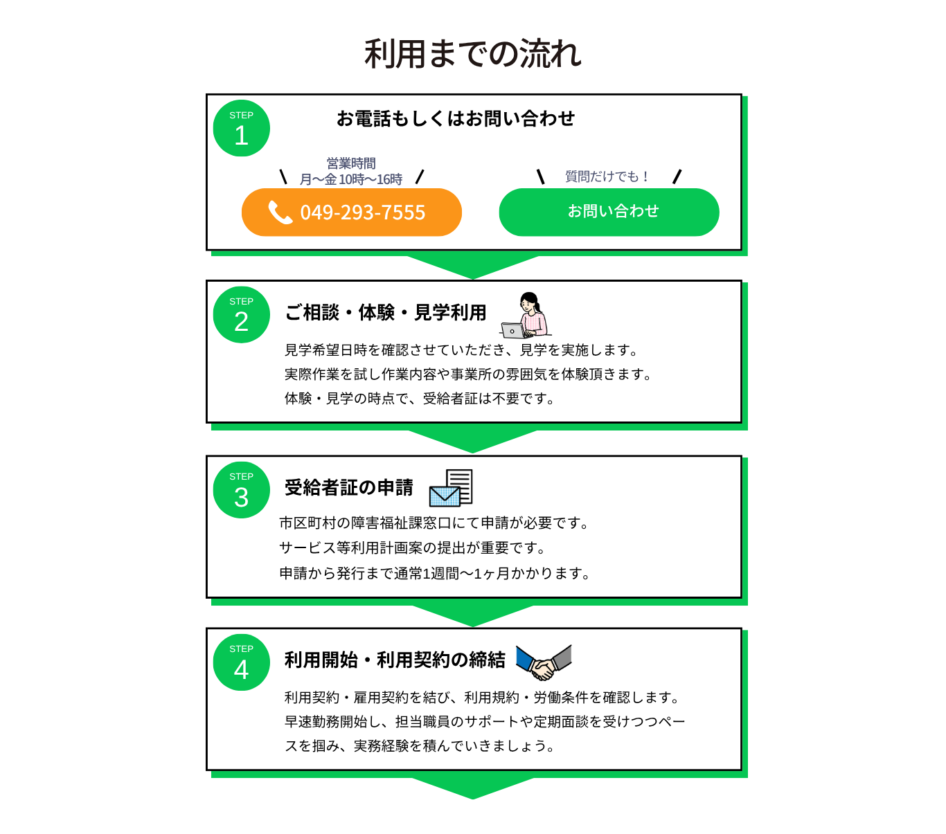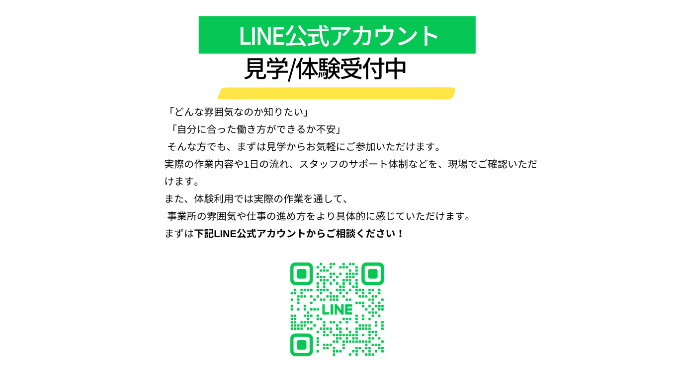 利用者の障害特性に合わせた手厚いサポートが充実しており、安心して働ける環境が整っています。